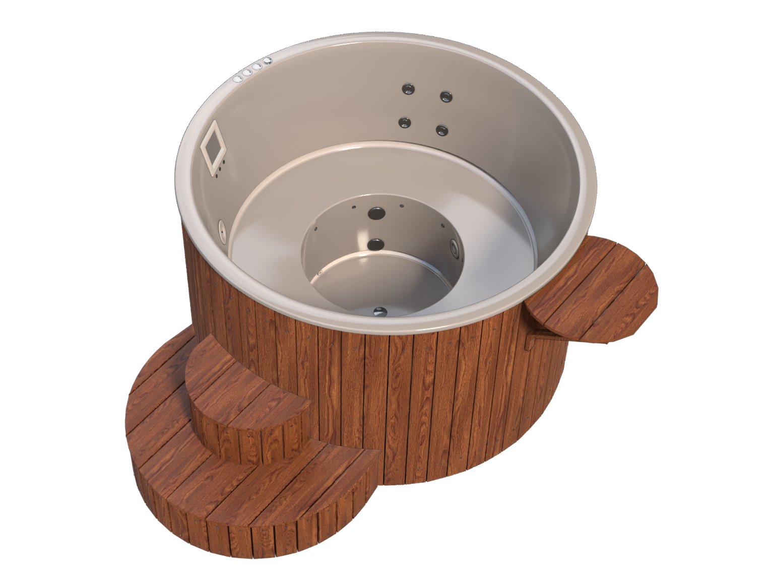 Можно установить дополнительное оборудование, которое превратит купель в спа-комплекс (гидромассаж, аэромассаж, подогрев, подсветка)